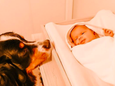 What a great older sibling. Lilah helped Josiah with his pacifier.