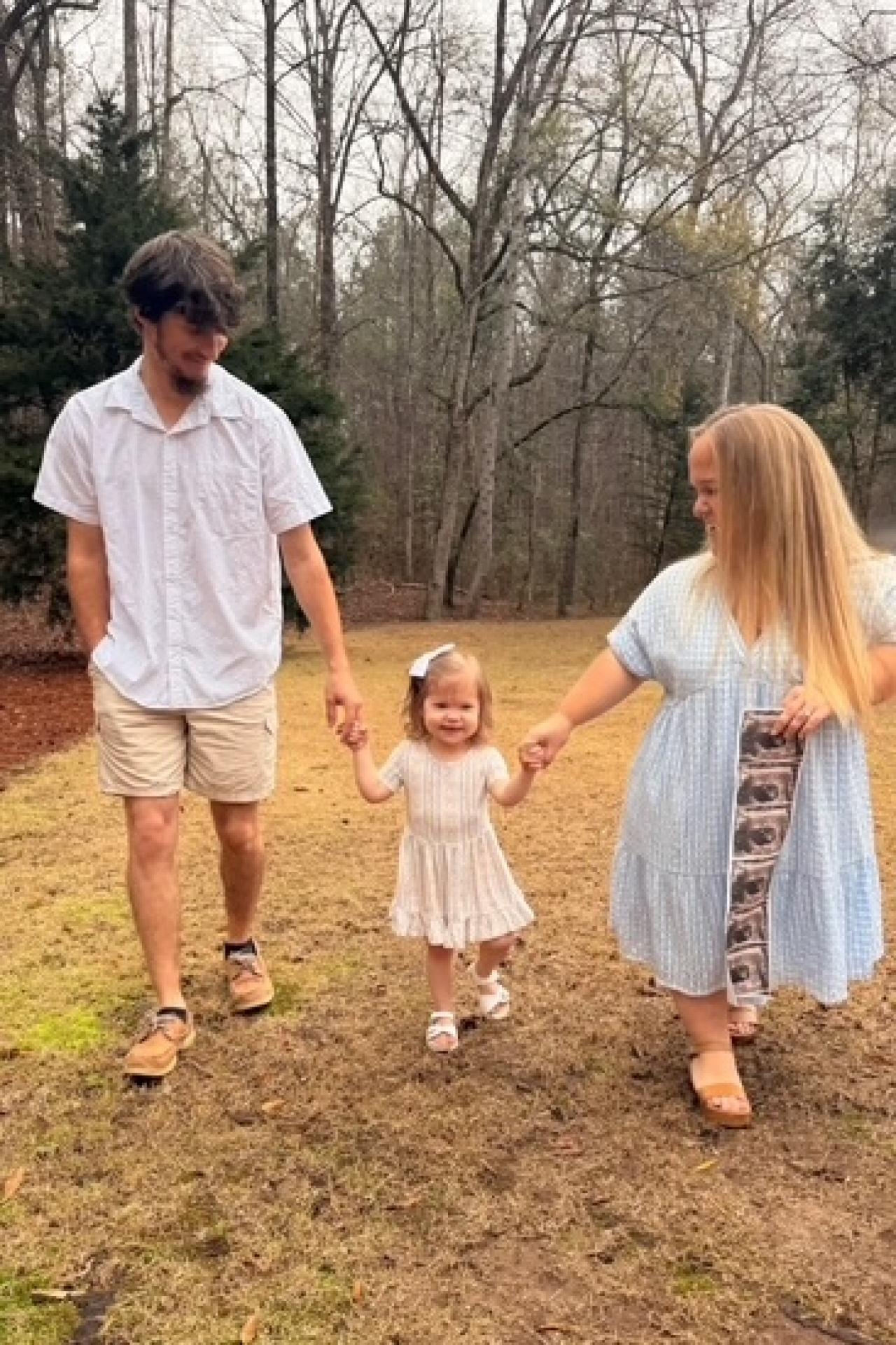 The proud parents are expecting their second child together and they're excited to let the world know. They took a family photo with their two-year-old daughter, Leighton, and Liz's sonogram images to reveal the pregnancy.