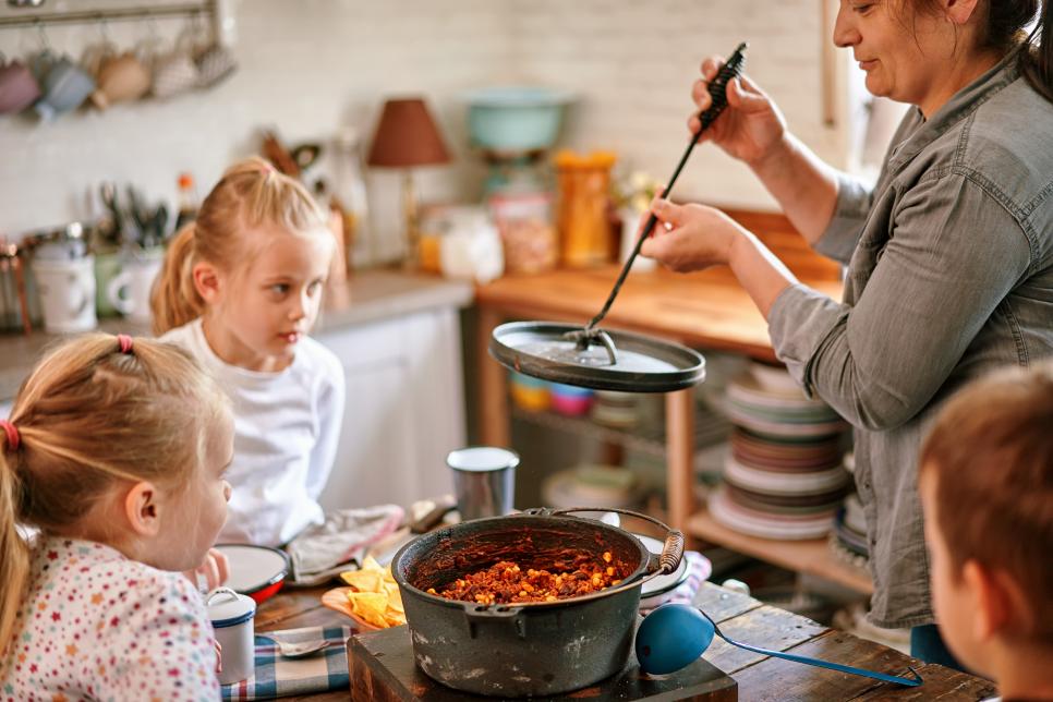 Cooking together is always a fun family activity. Chili is a great pick because it’s not only warm on a cool fall day, but it's also easy for all ages to participate in making the dish. The youngest kids can rinse the beans, the older kids can measure the spices, and everyone can have fun topping the chili with cheese, sour cream, and crackers once it’s done.