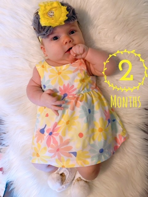 Eleanor is 2 months old! She loves to eat, sit up, roll over, talk with daddy, giggle and listen to mommy and daddy’s conversations. She’s not a fan of tummy time but is getting the hang of it. She loves listening to jazz and classical music. We love seeing each day what new thing she’s learned and how smart she’s become already! We are so in love!