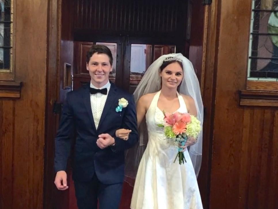 Brandon and Julia expedited their wedding plans to ensure Julia's visa wouldn't expire. It was a stressful situation, but it all worked out in the end. The couple wed in a small church with only a few family members in attendance. Brandon's parents, Betty and Ron, set up a video call so Julia's parents, Elena and Igor, could watch and "attend" from their homes in Russia. Brandon read his vows in Russian and Julia shared hers in English. It was a heartfelt day for all.