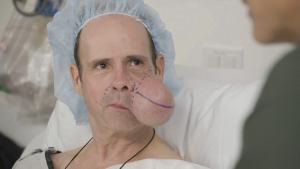Dr. Roostaeian treats a man with a huge crater in his face left by a tumor.