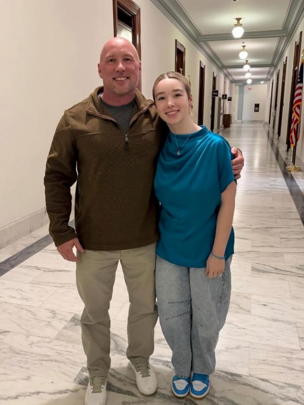 Baylen and her dad, Allen, spread awareness with Tourette Association.