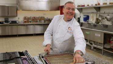 Mauro bakes a replica Brandenburg Gate cake for the German Embassy's party.